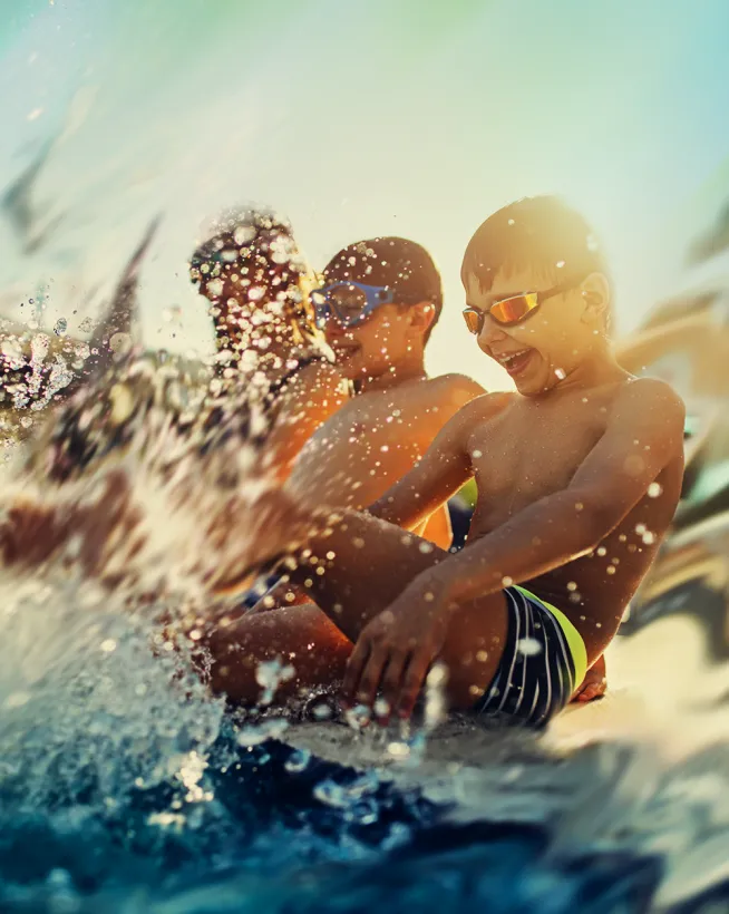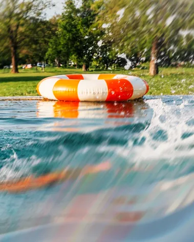 Wasser und Freizeit leben. 50-Meter-Sportbecken, großzügige Freizeit- / Nichtschwimmerbecken und ein eigener beschatteter Kinderbereich, vielfältige Möglichkeiten für Bewegung, Spiel und Erholung. Während im Sportbecken Bahnen gezogen werden, laden die Freizeitbereiche und das Kinderbecken zum Spielen, Entspannen und zum Genießen des Sommertages ein.